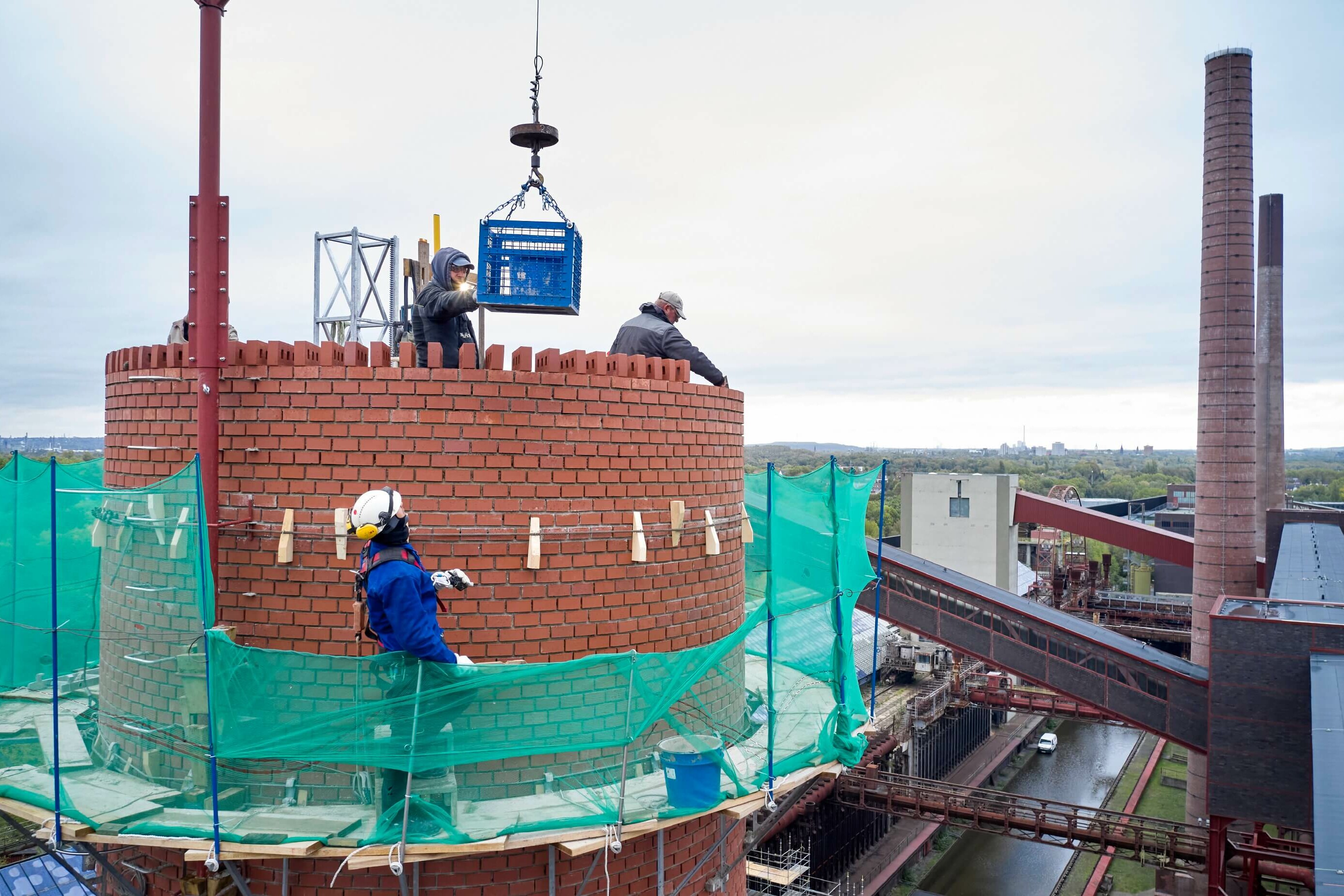 Er kam bereits bei der Sanierung von Schornstein S5 (2018/19) und zuvor auch bei den Sanierungen der Mischanlage für die Schächte I, II, und IIX sowie der Kohlenförderbrücke (beides 2017) zum Einsatz.